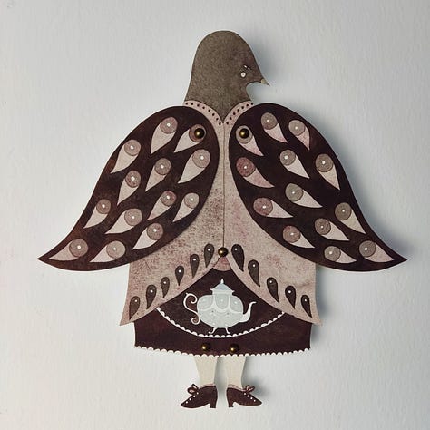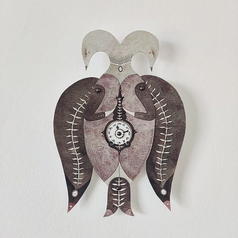 This month’s inhabitants of the Burrow are my articulated paper birds. To celebrate the Equinox, they’ve gathered here and decided to be 50% off! There are just a few left, and you can check them out here: